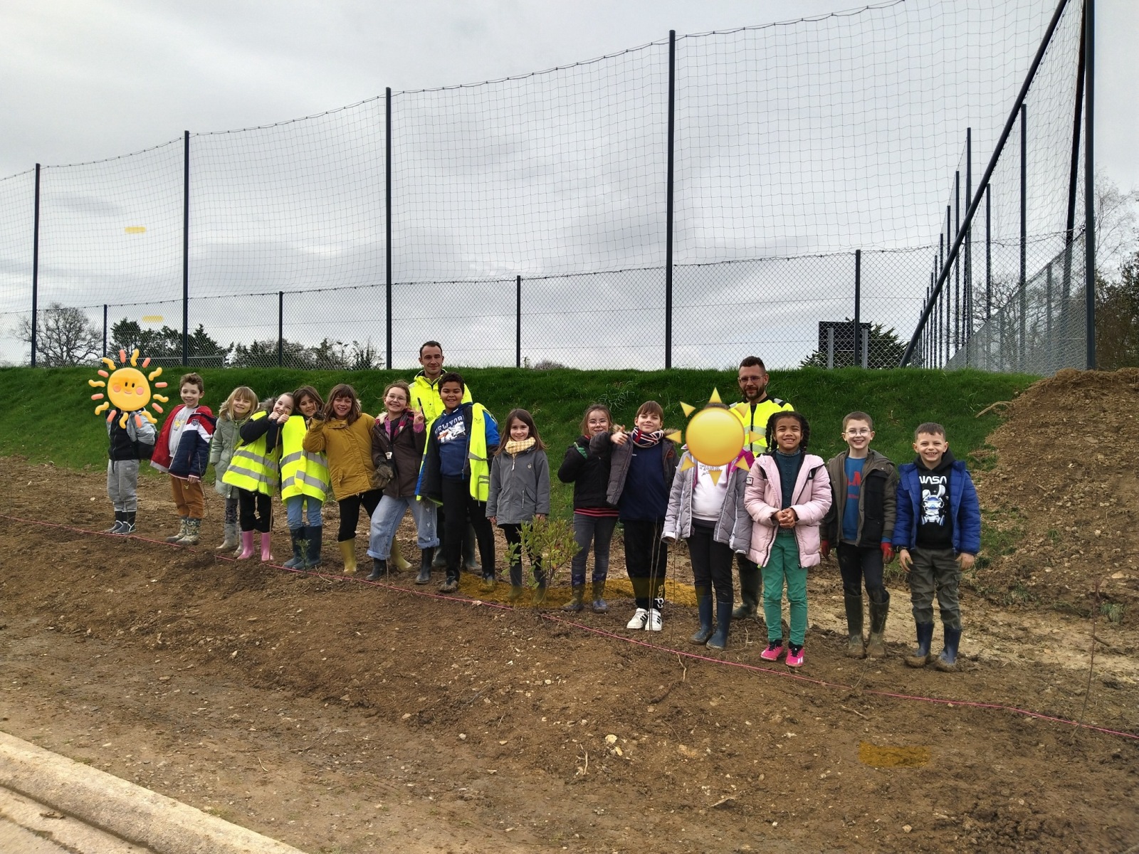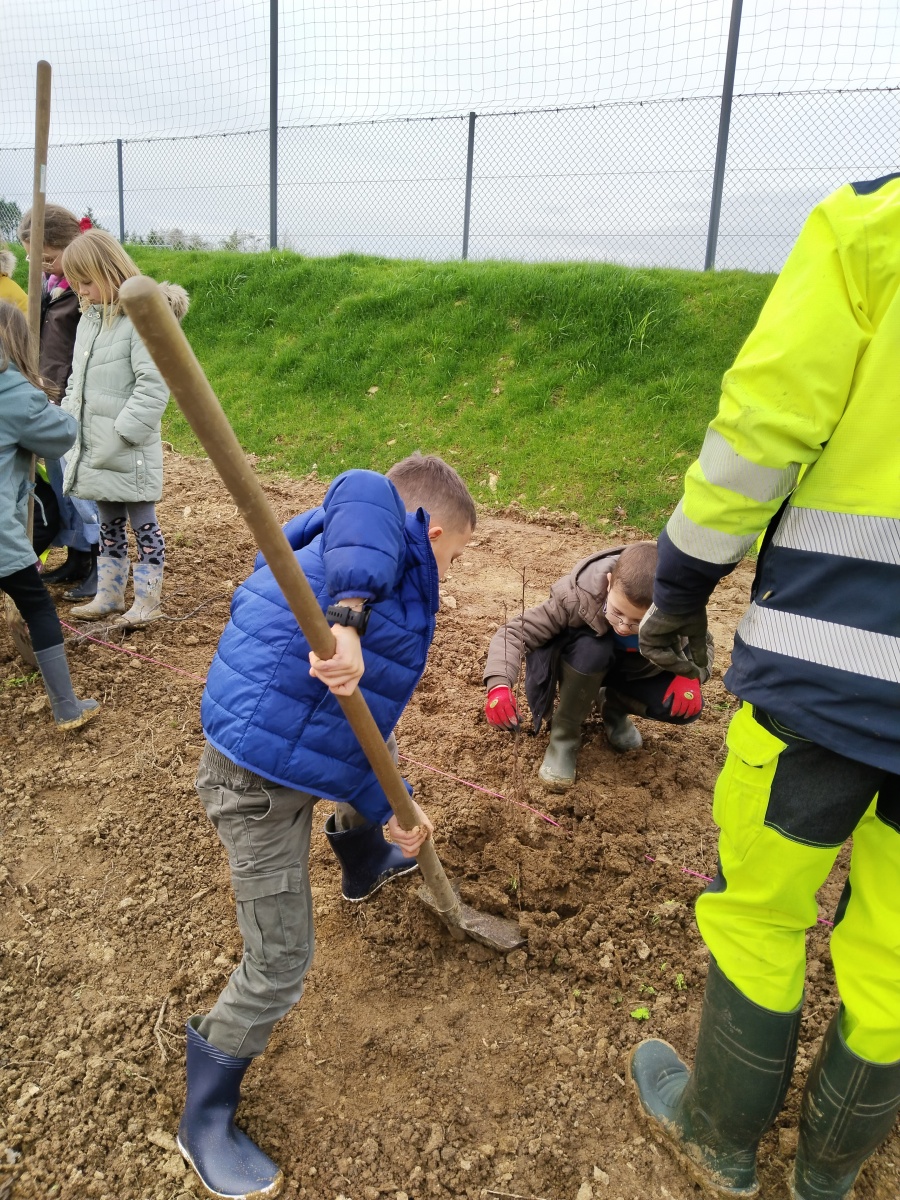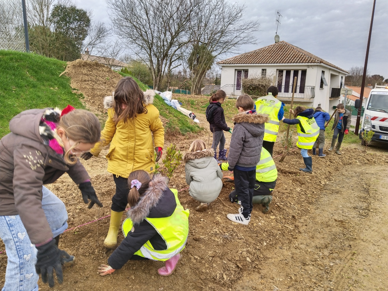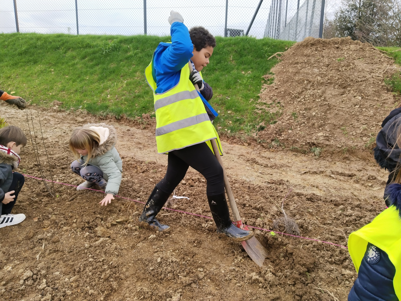 les élèves de CE2 ont eu la chance de participer aux plantations d’arbres et d’arbustes le long du stade Montebello.